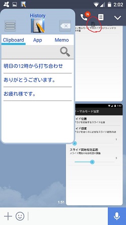 ウェブサイトを開いている状態や、LINEを起動しているときでも、閲覧しながら起動ができるアプリです。カテゴリー毎に管理が可能で、コピーしたものは履歴に残ります。