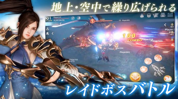 地上だけでなく空中での描写が魅力的です。MMOも遂に空を駆け巡る時代に…! 事前登録者数も多く話題になっていたアプリでもありますよ。