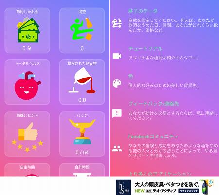 広告が全く邪魔にならずスムーズに使えるところも有り難いです。Androidの方におすすめの禁酒アプリです。
