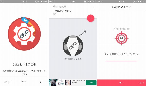 やる気を出すためのリマインダー機能が存在しており、1日に何回通知するか設定を行うことも可能です。禁酒を続けられるとアプリ内でバッジがもらえるほか、小ネタが用意されている点も面白いですね。
