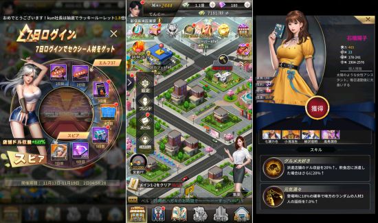アイドル、オフィスレディ、映画監督と100名を超える美麗な秘書が登場するほか、各秘書に個別のスキルが存在しています。秘書の組み合わせによって特殊な効果が発動するところも面白いですね。
