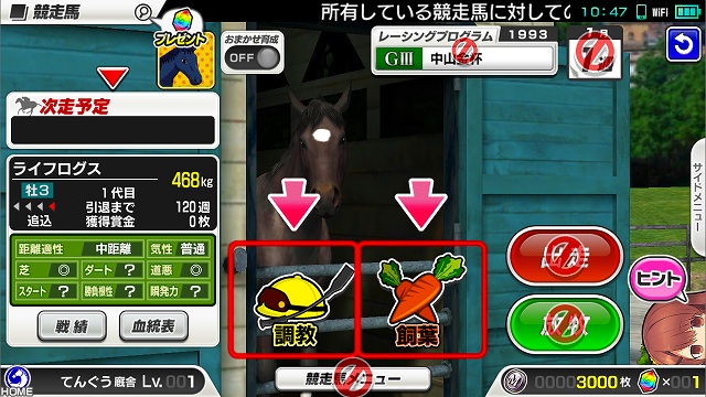 馬主のレベルを上げながら、新しい親馬を探す。他には育成素材を集めるなど、最高の馬を育て上げて、全レース制覇を目指すのが目標になります。