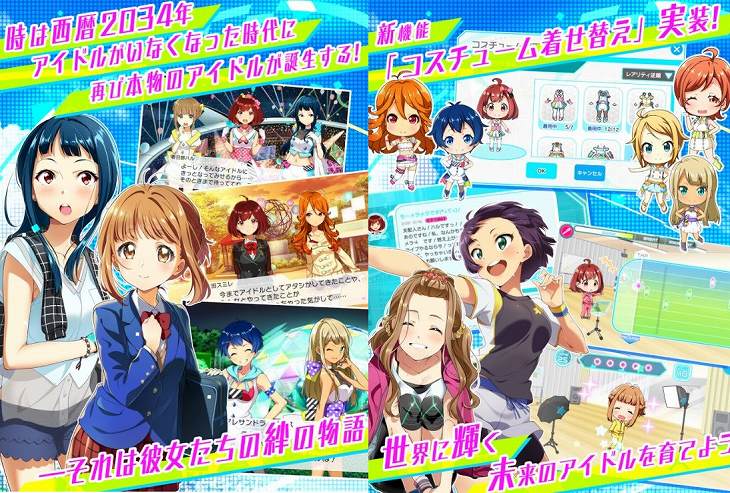 プレイヤーは支配人となりアイドルの原石をスカウトする物語。ストーリーは全100話以上のオリジナルで全編フルボイス仕様になっています。