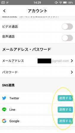 先程はメールアドレスで登録を行いましたが、アカウント設定からSNSへ連携を行うこともできます。アカウントの画面はギアマークをクリックすることで移動できますよ。