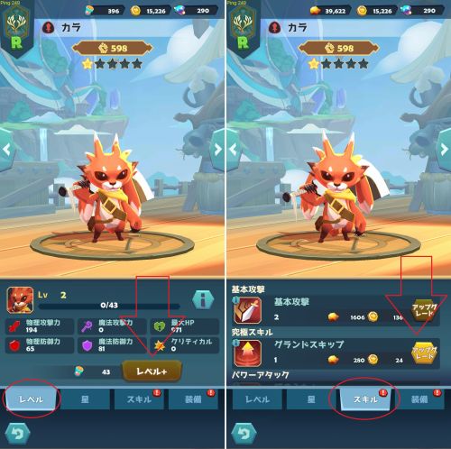 ヒーローのレベルが上がるとスキルのレベルアップも可能になります。メインに使用しているヒーローはスキルをガンガン上げていきたいところです。